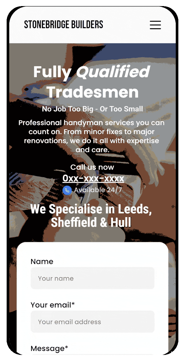 That's why we build websites specifically for trade professionals across the UK. No fancy nonsense. Just clean, professional sites that show customers exactly what they need to see: your work, your area, and how to get in touch.